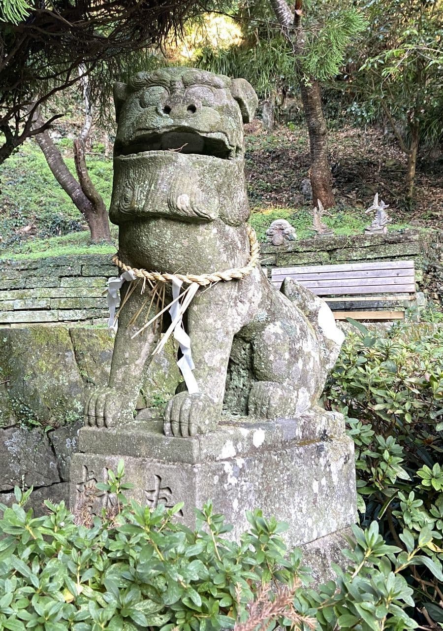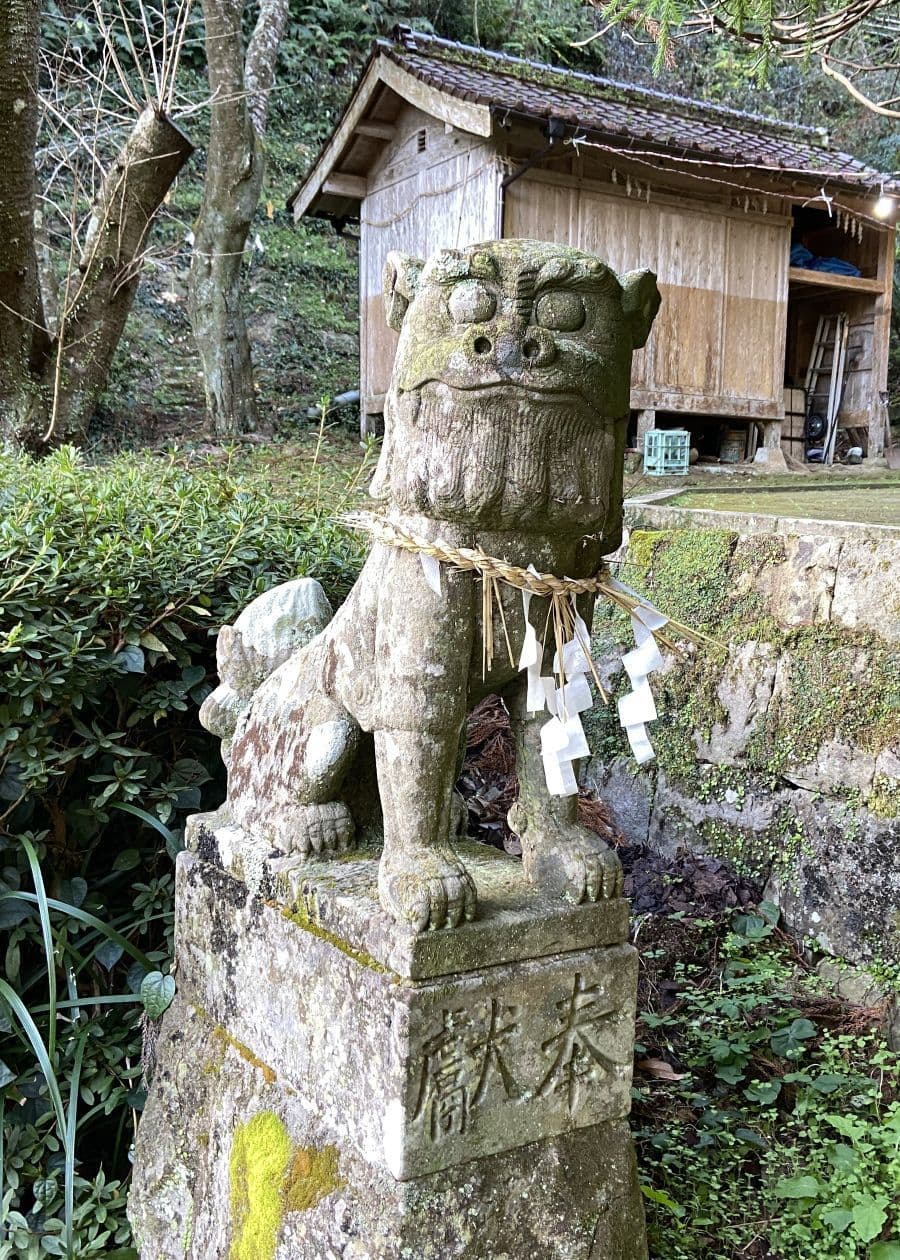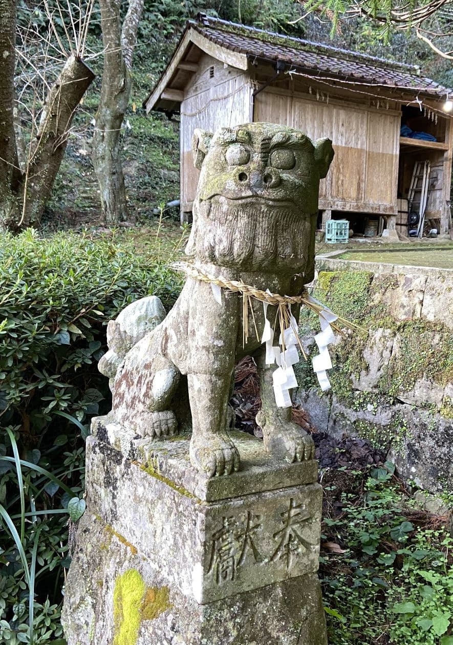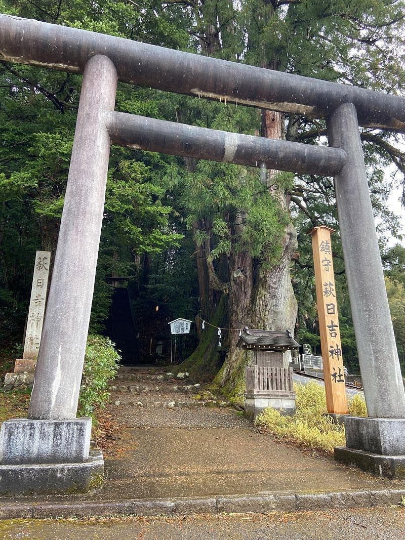 萩日吉神社の狛猿と児持杉