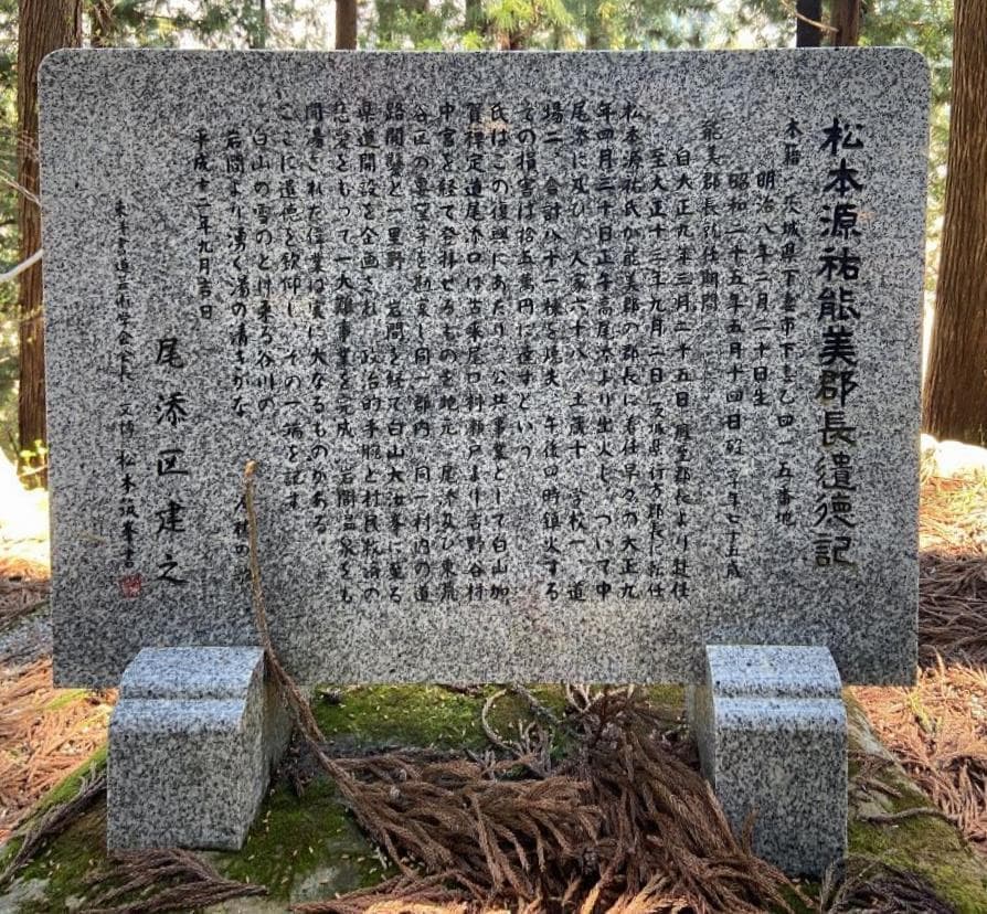 例年1月下旬は、千葉の海へ昆布養殖の種糸付け作業に出向いていますが、同じく毎年ボランティアで参加していただいているMさんに今回、私の同僚として初めて種糸作業を手伝ってくれた先輩を、「白山室堂で一緒に働いていた先輩です」と紹介したところ、自分の祖父は白山麓の尾添で天災後の救済と復興や白山登山新道に尽力した松本源祐だといいます。