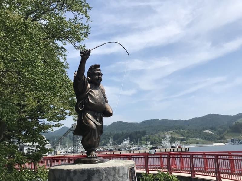 京アニ(京都アニメーション)の高校水泳部を描いたテレビアニメ「Free!」(フリー、2013年〜18年放送)に登場する岩鳶(いわとび)町は岩美町がモデルといわれ、荒砂神社も県大会の必勝祈願のシーンなどで登場しているそうです。