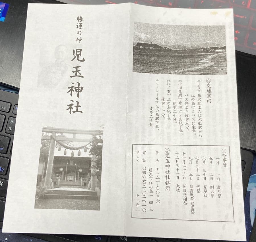 こりゃー江の島へ電車で遠足へ!と期待がふくらみ、早速師匠に近隣での昼飯処情報などを訪ねたところ、児玉神社が競売にかけられ云々と情報をいただきました。